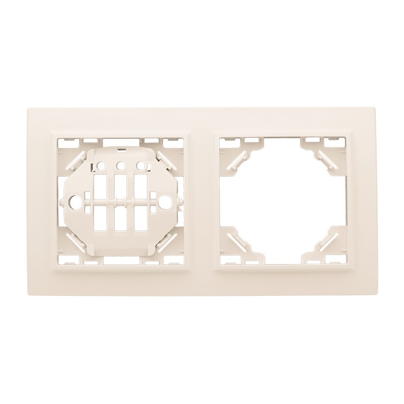 Предназначена для декоративного оформления розеток и выключателей при их скрытой установке. Рамка двухпостовая горизонтальная.