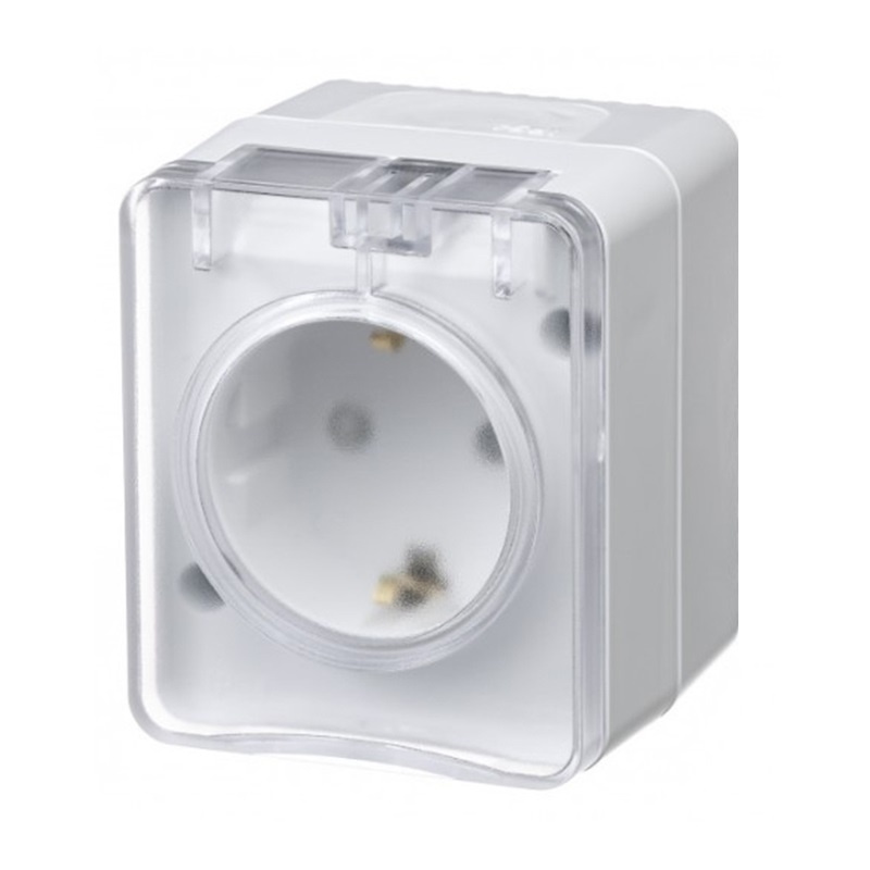 Предназначен для открытой установки. Серия AtlasDesign Profi54 создана специально для тех мест, где требуется повышенная защита от влаги и пыли. Одноместная, с заземлением, шторками и крышкой.