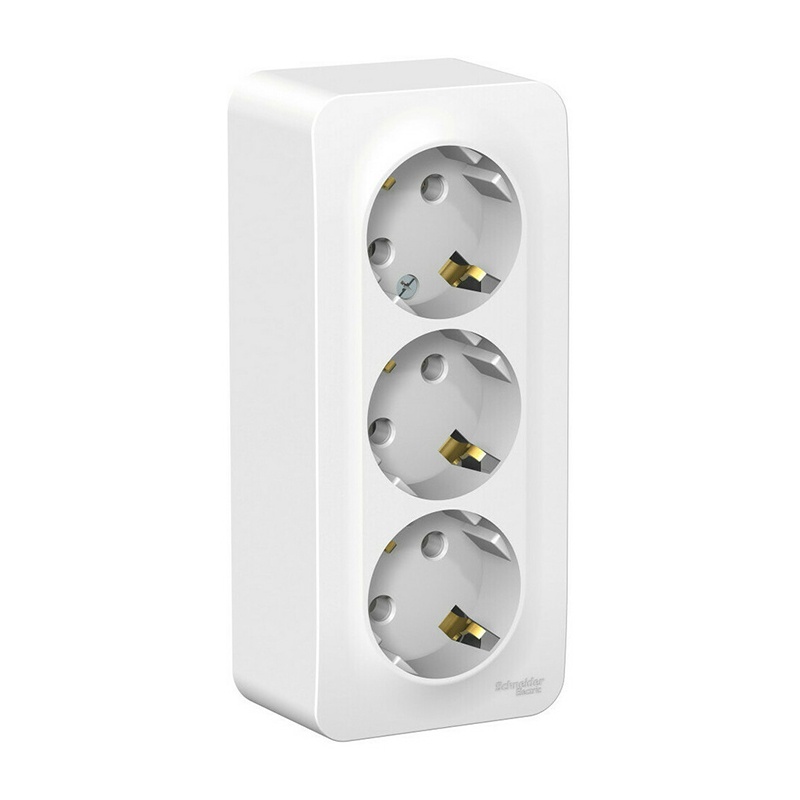 Предназначен для открытой установки. С изолирующей пластиной. Трехместная, с заземлением, без шторок.