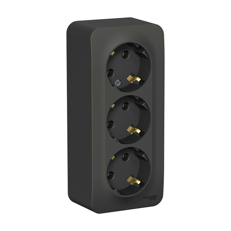 Предназначен для открытой установки. С изолирующей пластиной. Трехместная, с заземлением, без шторок.
