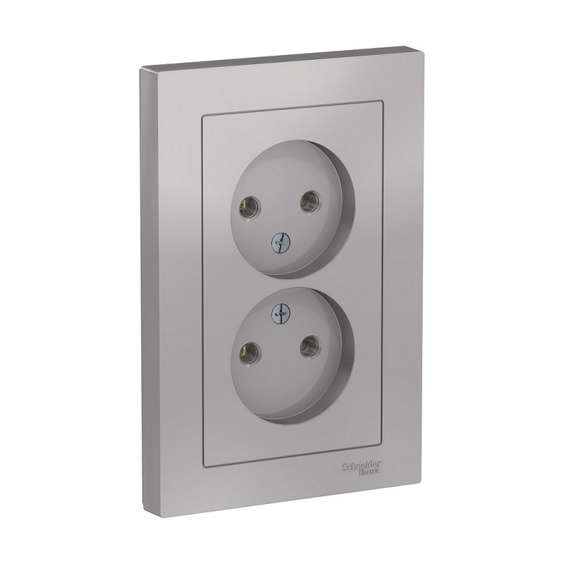 Розетка с/у Atlasdesign ATN000320, 2 гнезда, б/з, алюминий