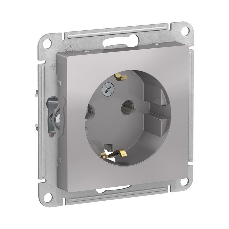 Розетка с/у Atlasdesign ATN000343, 1 гнездо, с/з, алюминий