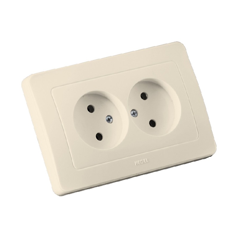 Розетка двухместная без заземления, цвет слоновая кость. Изготовлена из качественного пластика с добавлением стойких к царапинам добавкам. Основание выполнено из негорючего стеклонаполенного полиамида. Надежная пружинная бронза обеспечивает максимальный контакт с различными видами вилок, что в свою очередь позволяет избежать нагрев изделия. Поставляется с рамкой