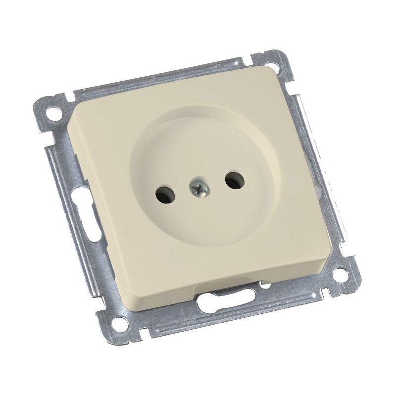 Механизм розетки без заземления, цвет слоновая кость. Изготовлен из качественного пластика с добавлением стойких к царапинам добавкам. Основание выполнено из негорючего стеклонаполенного полиамида. Надежная пружинная бронза обеспечивает максимальный контакт с различными видами вилок, что в свою очередь позволяет избежать нагрев изделия. Поставляется без рамки