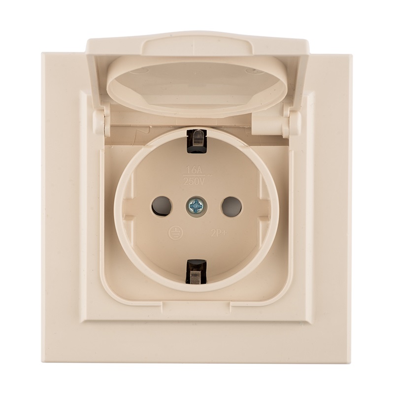 Предназначена для скрытой установки. Розетка с заземлением и крышкой. Корпус выполнен из ABS-пластика, обеспечивающего прочность и термостойкость изделий, устойчивость к воздействию солнечных лучей. Основание розетки выполнено из негорючего пластика. Защитные шторки защищают отверстия от посторонних предметов. Наличие крышки гарантирует защиту от пыли и воды.