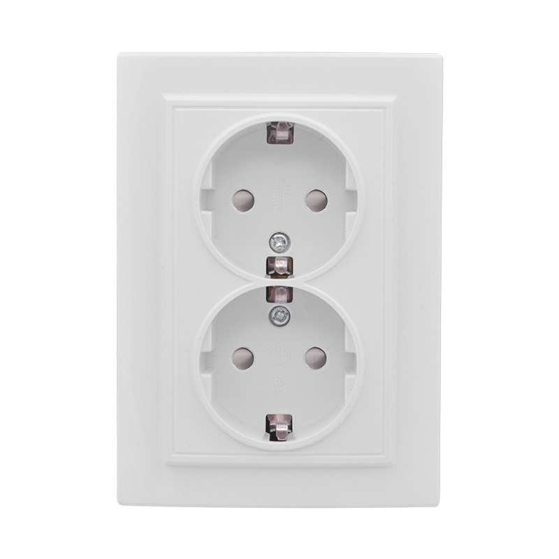 Предназначена для скрытой установки. Розетка 2 гнезда с заземлением. Корпус выполнен из ABS-пластика, обеспечивающего прочность и термостойкость изделий, устойчивость к воздействию солнечных лучей. Основание розетки выполнено из негорючего пластика. Защитные шторки защищают отверстия от посторонних предметов.