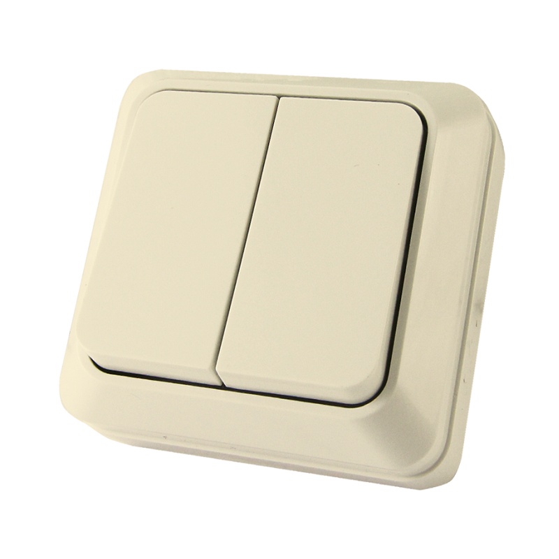 Выключатель двухклавишный открытой установки, цвет слоновая кость. Корпус из самозатухающего ABS-пластика, обеспечивающего прочность и устойчивость к воздействию солнечных лучей. Металлокерамические контакты позволяют сочетать высокую дугостойкость с хорошей проводимостью.