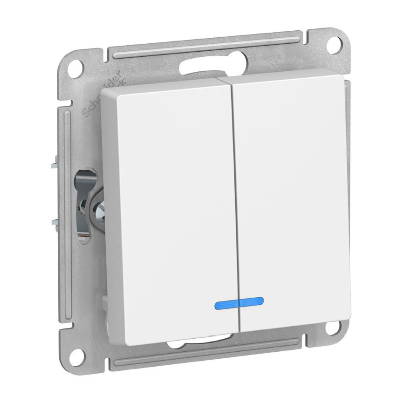 Предназначен для установки в стандартную коробку скрытого монтажа. Без рамки. Светодиодная подсветка синего цвета. Позволяет управлять двумя источниками света с одной точки. Лицевые детали из качественного ABS-пластика, устойчивого к царапинам и УФ-излучению. Пластик с ионами серебра обеспечивает антибактериальный эффект. Усиленные прямые монтажные лапки для лучшей фиксации механизма в монтажной коробке.