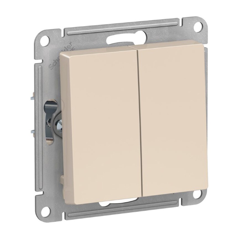 Предназначен для установки в стандартную коробку скрытого монтажа. Без рамки. Позволяет управлять двумя источниками света с одной точки. Лицевые детали из качественного ABS-пластика, устойчивого к царапинам и УФ-излучению. Усиленные прямые монтажные лапки для лучшей фиксации механизма в монтажной коробке.