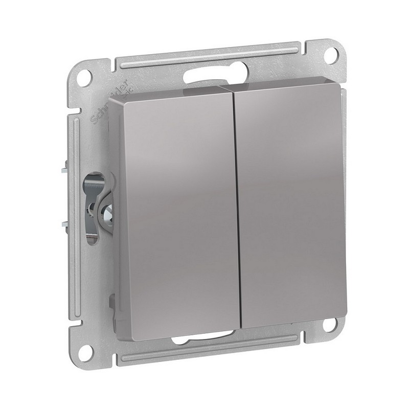 Выключатель с/у Atlasdesign ATN000351, 2 клавиши, б/инд, алюминий