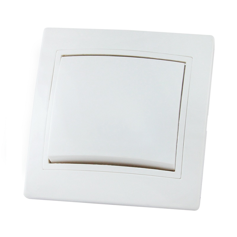 Выключатель одноклавишный скрытой установки, цвет белый. Основание керамическое, корпус выполнен из самозатухающего ABS-пластика, обеспечивающего прочность и устойчивость к воздействию солнечных лучей. Металлокерамические (AgNi) контакты позволяют сочетать высокую дугостойкость с хорошей проводимостью. Поставляется в комплекте с рамкой