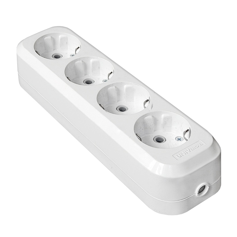 Используется как составная часть удлинителя. Применяется внутри помещения для подключения одновременно 4 устройств к электросети. Корпус изготовлен из АВС-пластика, стойкого к механическим повреждениям, устойчивого к солнечному свету и легко очищаемого от загрязнений. «Глухая» внутренняя вставка изготовлена из материала, не поддерживающего горение. Контакты колодки изготовлены из латуни.