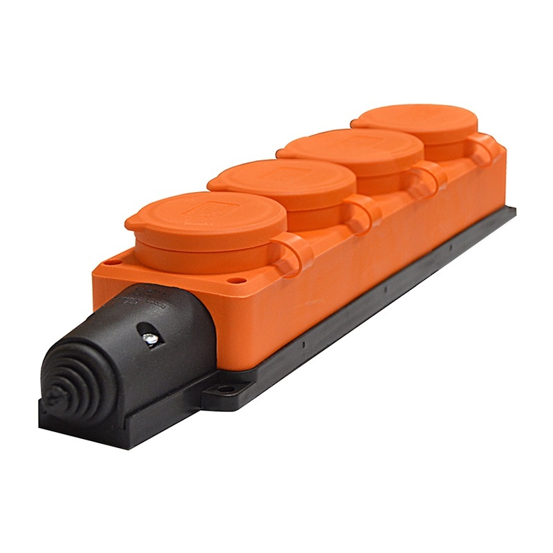 Розетка 4 гнезда, 2Р+РЕ, 16 А, 230 В, IP44, каучук, оранжевая