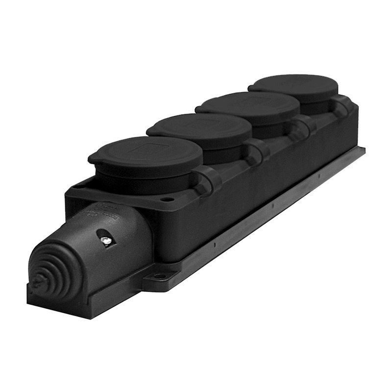 Розетка 4 гнезда, 2Р+РЕ, 16А, 230В, IP44, каучук, черная