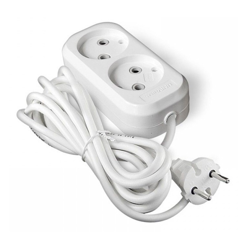 Удлинитель бытовой 011М-03, 2 гнезда, ПВС 2х0,75, 1380 Вт, б/з, 3 м, белый