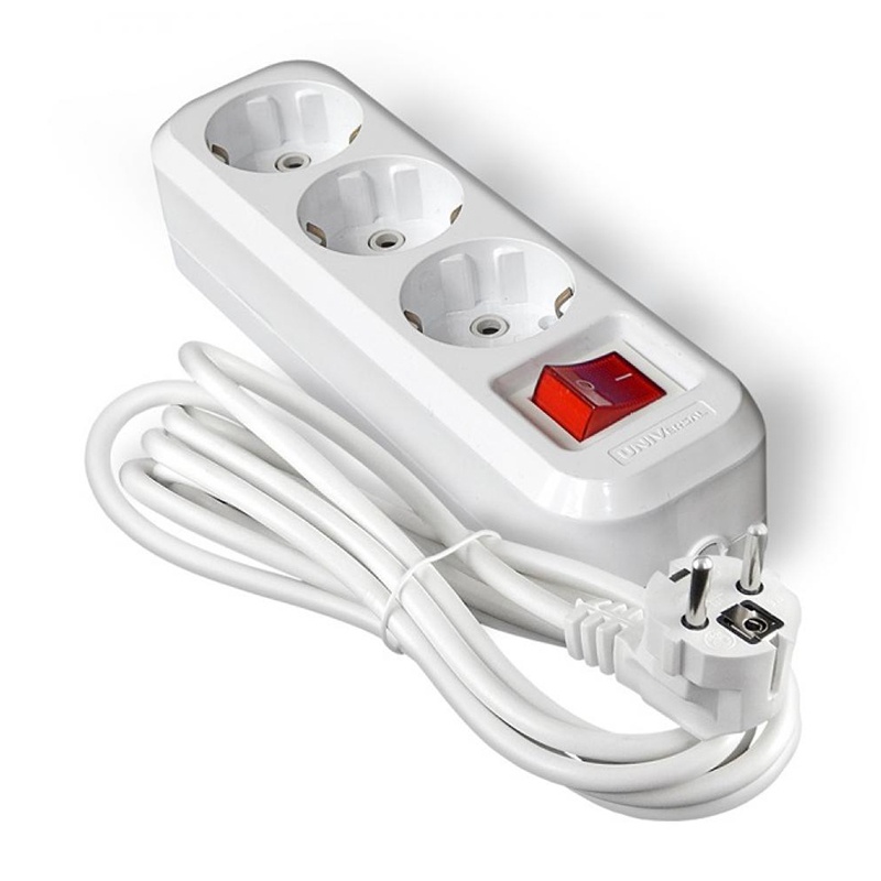 Удлинитель бытовой 9631987, 3 гнезда, ПВС 3х1, 2990 Вт, с/з и выключателем, 5 м, белый