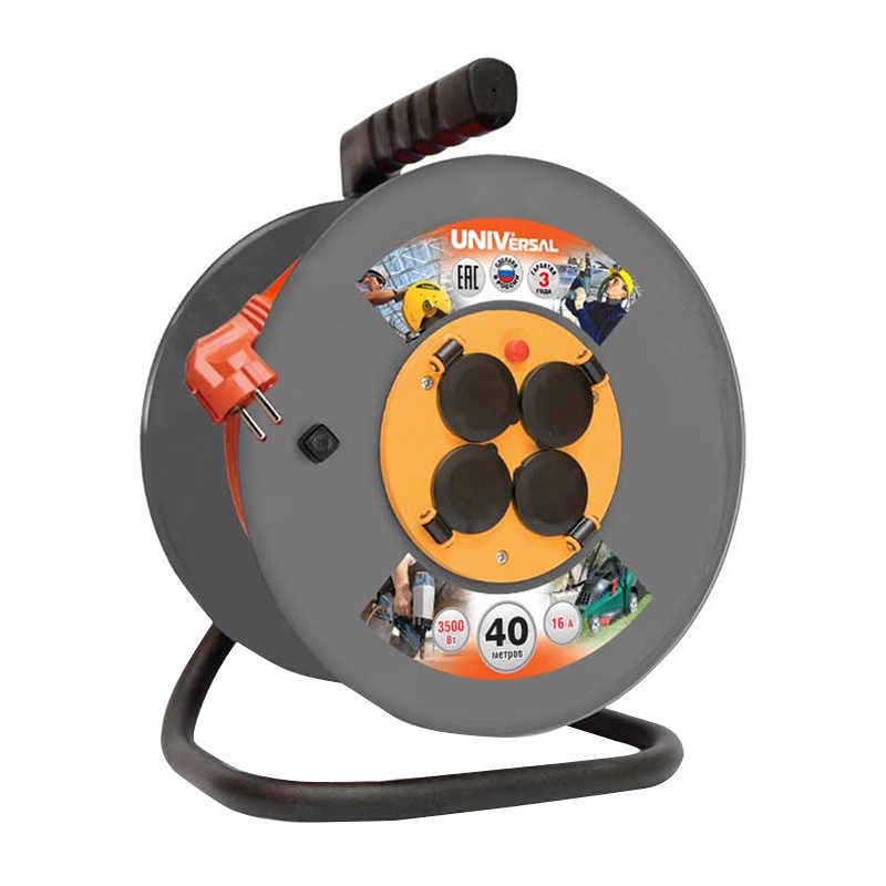 Применяется для подключения электроприборов и электроинструмента на расстоянии до 30 м от стационарной розетки при проведении строительных и ремонтных работ (на стройке, на садовом участке, на промышленных предприятиях и т.д.). Катушка удлинителя выполнена из полипропилена и позволяет подключить до 4 устройств. Удлинитель имеет 4 гнезда розеток, оснащенных защитными шторками, и автоматический термовыключатель, предохраняющий удлинитель от перегрузок. Оранжевый цвет провода ПВС, вилки и розетки делает его легко заметным практически на любой поверхности.