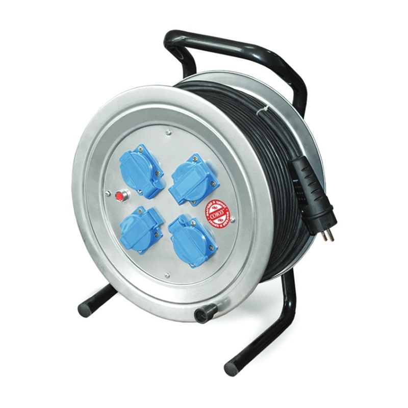 Предназначен для подключения электроприборов в местах, удалённых от стационарных розеток. Удлинители на кабельных катушках состоят из разборной кабельной катушки для наматывания/сматывания несъемного гибкого кабеля с брызгозащищенной вилкой, встроенной в корпус брызгозащищенной четырехместной розетки. Кабельная катушка выполнена из металла, шнур с медными жилами и резиновой изоляцией. Удлинители предназначены для обеспечения присоединения электрических приемников к однофазным электрическим сетям, могут применяться в помещениях или вне их.