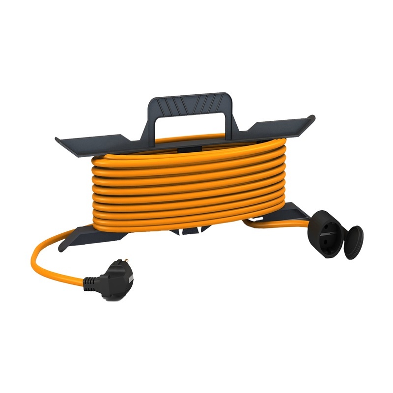 Предназначен для временного подключения различных электроприборов, удаленных от стационарных розеток. Может использоваться во время выполнения строительных, ремонтных и монтажных работ, для подключения одного прибора. Кабель комплектуется рамкой из высококачественного пластика, что позволяет осуществлять быстрое сматывание и разматывания провода, а так же обеспечить удобную транспортировку и использование благодаря анатомической ручке. Вилка имеет прочную конструкцию. Кабель не подвержен изломам, что обеспечивает удлинителю максимальную надежность и долговечность.