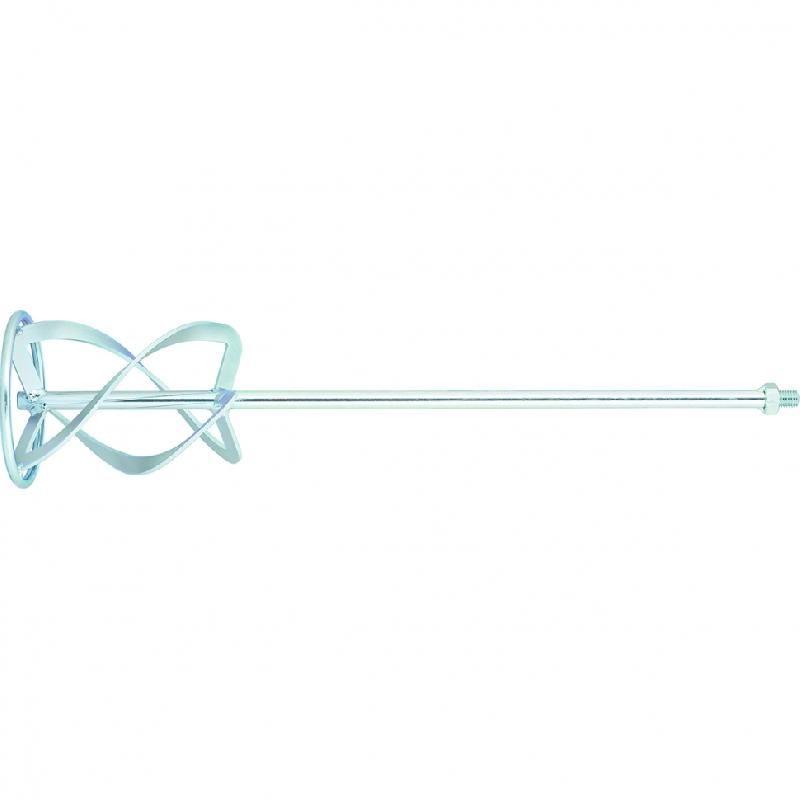 Оцинкованная насадка для миксера обеспечивает размешивание легких текучих растворов (красок, лаков, клеев, растворов для пульверизаторов и т.д). Изделие представляет собой стержень с округлым сечением и усиленной металлической крыльчаткой. Насадка перемешивает раствор сверху вниз, не нагружая при этом инструмент. Особенности конструкции позволяют комбинировать направление потоков раствора, как в вертикальных, так и в горизонтальных плоскостях. Тип хвостовика: М14.