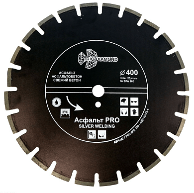 Алмазный диск Hilberg Асфальт PRO Ø400 мм изготовлен методом серебряной пайки. Диск используется для резки асфальта, асфальтобетона и песчаника. Посадочное отверстие — 25,4 мм. Применяется с водяным охлаждением. Наличие защитного зуба обеспечивает высокий ресурс. Диск подходит для работы на нарезчиках швов.