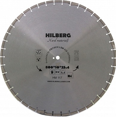 Алмазный диск Hilberg Materials Laser Ø900 мм изготовлен методом лазерной наварки сегментов на немецком оборудовании Dr. Fritsch. Диск используется для резки армированного бетона, гранита, огнеупоров и железобетона. Толщина алмазного слоя 4,9 мм, а высота 10 мм. Посадочное отверстие — 25,4 мм. Резка осуществляется как с применением водяного охлаждения, так и без. Диск подходит для работы на нарезчиках швов.