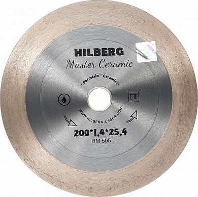 Алмазный диск Hilberg Master Ceramic Ø200 мм изготовлен методом горячего прессования. Используется для резки керамогранита, керамики и твердой керамики. Увеличенная высота режущей кромки и утолщение корпуса обеспечивают дополнительную жесткость, а сверхтонкая режущая кромка отвечает за чистый рез без сколов, как при прямолинейном резе, так и при резе под углом 45 градусов. Толщина алмазного слоя — 1,4 мм, а высота 25 мм. Посадочное отверстие — 25,4.