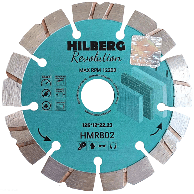 Алмазный диск Hilberg Revolution Ø125 мм изготовлен методом горячего прессования. Используется для резки бетона, слабо армированного бетона, тротуарной плитки, кирпича, бордюрного и натурального камня. Толщина алмазного слоя 2,2 мм, а высота 12 мм. Посадочное отверстие — 22,23 мм. Резка осуществляется как с применением водяного охлаждения, так и без. Диск подходит для работы на УШМ.