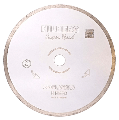 Алмазный диск Hilberg Super Hard Сплошной Ø250 мм изготовлен методом горячего прессования. Используется для резки керамогранита и твердой керамики с применением водяного охлаждения. Толщина алмазного слоя 1,6 мм, а высота 8 мм. Посадочное отверстие — 25,4 мм. Ультратонкая кромка обеспечивает чистый рез без сколов. Диск подходит для работы на камнерезных и плиткорезных станках.