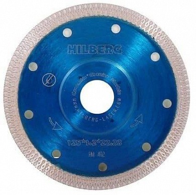 Алмазный диск Hilberg Ультратонкий турбо X тип Ø125 мм изготовлен методом горячего прессования. Используется для сухой резки керамогранита и керамики. Толщина алмазного слоя 1,22 мм, а высота 10 мм. Посадочное отверстие — 22,23 мм. Наличие х-образной режущей кромки позволяет осуществлять рез без применения водяного охлаждения и не допускает сколов. Диск подходит для работы на УШМ.