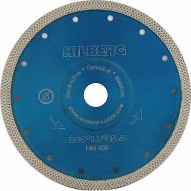 Алмазный диск Hilberg Ультратонкий турбо X тип Ø200 мм изготовлен методом горячего прессования. Используется для сухой резки керамогранита и керамики. Толщина алмазного слоя 1,7 мм, а высота 10 мм. Посадочное отверстие — 25,4 мм. Наличие х-образной режущей кромки позволяет осуществлять рез без применения водяного охлаждения и не допускает сколов. Диск подходит для работы на УШМ.