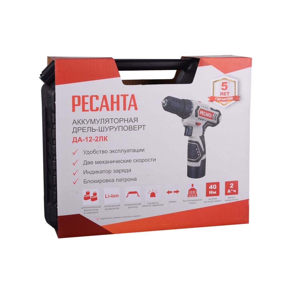 Дрель-шуруповерт аккумуляторная ДА-12-2ЛК Ресанта используется для просверливания отверстий в деревянных, пластмассовых и металлических изделиях или для работы в качестве шуруповерта. Модель оснащена 2 аккумуляторами и кейсом, незаменима для людей, постоянно использующих дрели-шуруповерты в быту.Прорезиненная рукоять обеспечивает удобное и надёжное удержание инструмента в руке во время работы. Быстрозажимной патрон облегчает замену рабочей оснастки. Двухскоростной редуктор для удобства ведения различных работ. Реверсивный механизм предназначен для быстрого изъятия сверла из материала в случае застревания, выкручивания или ослабления крепежа. С помощью регулировки частоты вращения инструмент можно настроить под необходимую толщину материала. Модель работает от надёжного литий-ионного аккумулятора (Li-Ion).