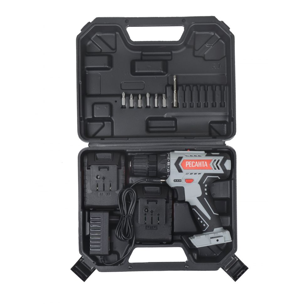 Дрель-шуруповерт аккумуляторная ДА-18-2ЛК Ресанта используется для просверливания отверстий в деревянных, пластмассовых и металлических изделиях или для работы в качестве шуруповерт. Модель оснащена 2 аккумуляторами и незаменима для людей, постоянно использующих дрели-шуруповерты в быту.Прорезиненная рукоять обеспечивает удобное и надёжное удержание инструмента в руке во время работы. Быстрозажимной патрон облегчает замену рабочей оснастки. Двухскоростной редуктор для удобства ведения различных работ. Реверсивный механизм предназначен для быстрого изъятия сверла из материала в случае застревания, выкручивания или ослабления крепежа. С помощью регулировки частоты вращения инструмент можно настроить под необходимую толщину материала. Модель работает от надёжного литий-ионного аккумулятора (Li-Ion).