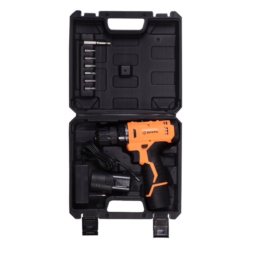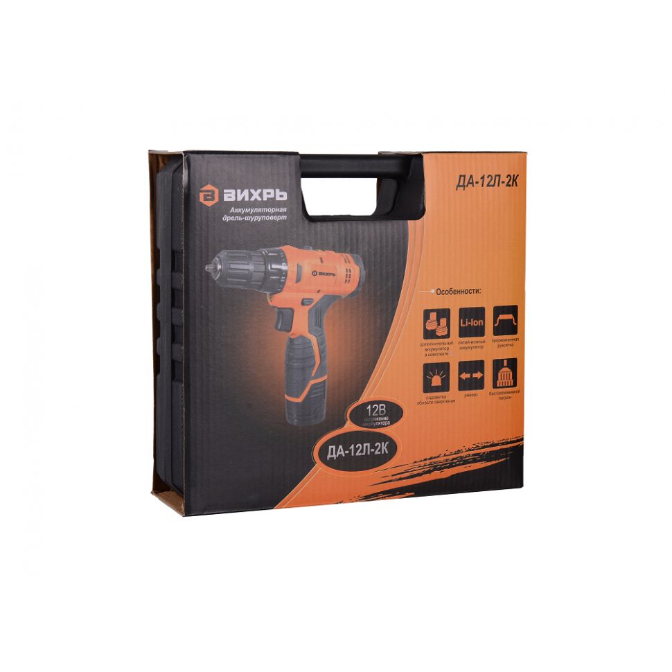 Дрель-шуруповерт аккумуляторная ВИХРЬ ДА-12Л-2К – незаменимый помощник мастера в ремонте или строительстве. Электроинструмент является аналогом модели ДА-12Л-2, отличие: есть кейс и второй аккумулятор. Прибор аккуратно сверлит отверстия на поверхностях из дерева и металла, а также накрепко закручивает шурупы. В комплект к дрели-шуруповерту поставляется удобный кейс, в котором можно хранить инструмент, зарядку к нему и другие рабочие детали. Не требует подключения к сети, что позволяет использовать ее в помещениях, где нет доступа к системе электропитания. Рабочие элементы легко заменить благодаря быстрозажимному патрону. Для ослабления креплений и выкручивания шурупов есть обратный ход. Форма рукоятки удобная, с резиновыми вставками, не скользит в руке. Система охлаждения мотора за счет вентиляционных отверстий на корпусе. Щёточный двигатель, две скорости (0-350 об/мин и 0-1250 об/мин). Модель работает от надёжного литий-ионного аккумулятора (Li-Ion).