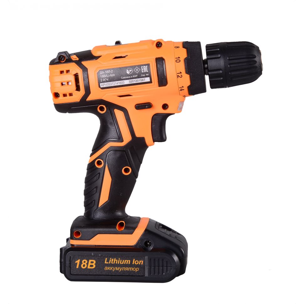 Электроинструмент является аналогом модели ДА-18Л-2К, отличие: нет кейса и второго аккумулятора. Прорезиненная рукоятка обеспечивает удобное и надёжное удержание инструмента в руке во время работы. Быстрозажимной патрон облегчает замену рабочей оснастки. Двухскоростной редуктор для удобства ведения различных работ. Реверсивный механизм предназначен для быстрого изъятия сверла из материала в случае застревания, выкручивания или ослабления крепежа. С помощью регулировки частоты вращения инструмент можно настроить под необходимую толщину материала. Модель работает от надёжного литий-ионного аккумулятора (Li-Ion).