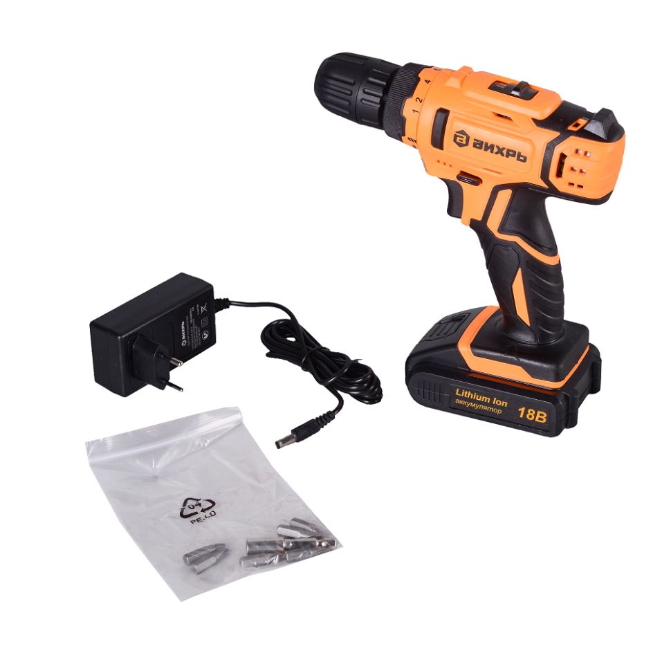 Дрель-шуруповерт ВИХРЬ ДА-18Л-2 используется для сверления отверстий в деревянных, пластмассовых и металлических изделиях или для работы в качестве шуруповерт.
