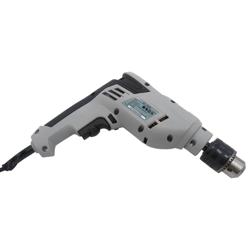 — Рукоятка имеет мягкую накладку и упор в нижней части для надежного захвата дрели во время работы.