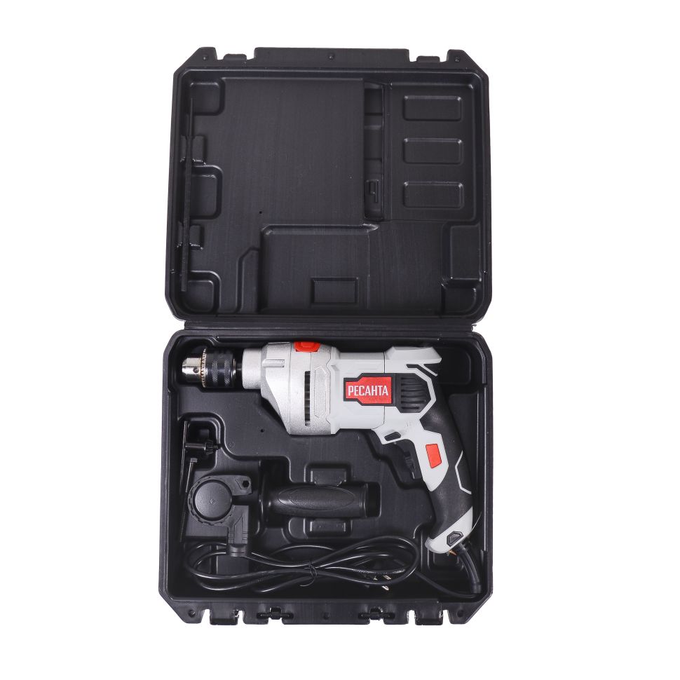 Комплектация Ударная дрель 1 шт. <br>Ключ для патрона 1 шт. <br>Ограничитель глубины сверления 1 шт. <br>Боковая рукоятка 1 шт. <br>Паспорт (инструкция) 1 шт. <br>Упаковка 1 шт.