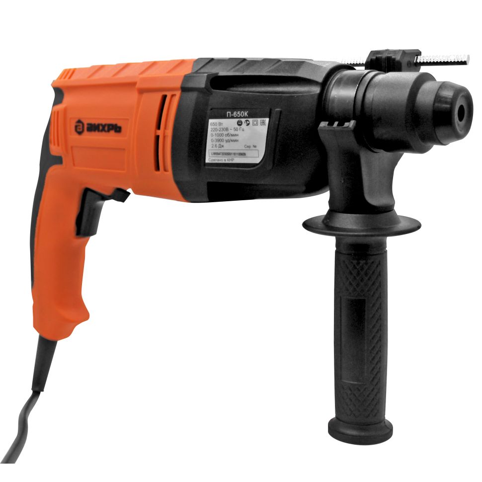 Перфоратор ВИХРЬ – электроинструмент, аналогичный дрели, но с наличием не механического, а пневматического ударного механизма. Именно поэтому перфоратор используют для сложных работ по твёрдым материалам — бетону, кирпичу, металлам. Комплект поставки: Перфоратор 1 шт. Ограничитель глубины сверления 1 шт. Боковая рукоятка 1шт.Паспорт (инструкция) 1 шт. Упаковка 1 шт. Кейс пластмассовый 1 шт. Дополнительно в комплект поставки машины могут быть включены: Бур 1 шт. Долото 1 шт. Смазка для ударного механизма (для моделей П-1200К-М, П-1400К-В). Ключ для пластиковой заглушки 1 шт.
