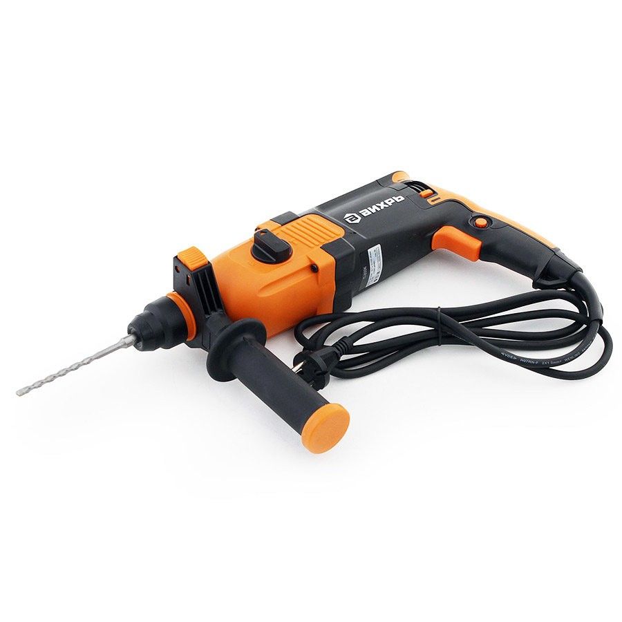Перфоратор ВИХРЬ – электроинструмент, аналогичный дрели, но с наличием не механического, а пневматического ударного механизма. Именно поэтому перфоратор используют для сложных работ по твёрдым материалам — бетону, кирпичу, металлам. Агрегат используется для сверления и пробивания отверстий в прочных материалах без приложения особых физических усилий со стороны оператора. Принцип работы перфоратора – это разрушение обрабатываемого материала с помощью поступательных и вращательных действий рабочего элемента. Состоит перфоратор из электрического двигателя, редуктора, ударного механизма и патрона для крепления рабочих инструментов (буры, коронки, зубила и т.д.).