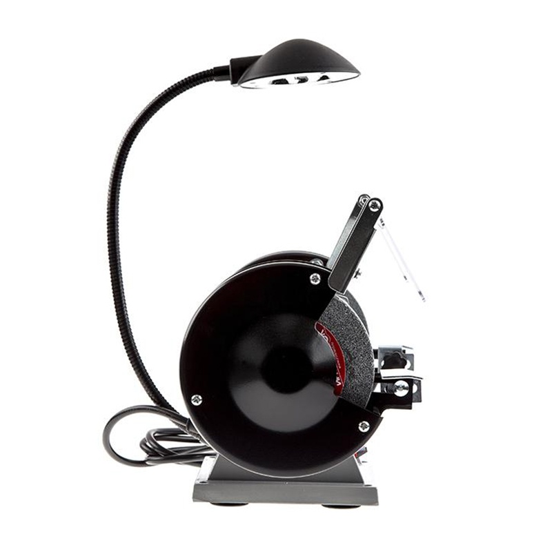 Предназначена для заточки режущего инструмента, используемого для работы на металлорежущих станках (резцы, сверла), для заточки лезвий ножей, топоров, ножниц, также применяется для снятия фасок и заусенцев, приданию деталям определенной формы за счет вращения абразивного круга (камня), в качестве привода используется асинхронный двигатель. Удобная регулируемая подсветка зоны заточки. Металлический корпус. Наличие упоров для заточки. Наличие щитков для защиты оператора от искр. Оптимальная мощность. Заточной круг входит в комплект.