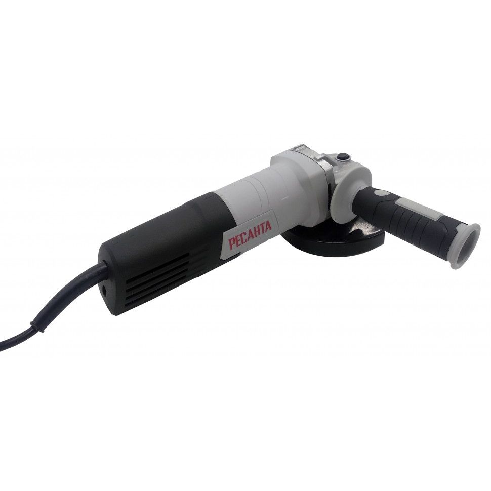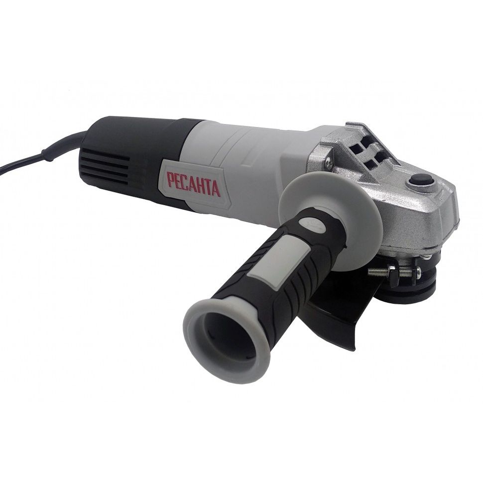 Углошлифовальная машина УШМ-125/1100 Ресанта — инструмент, используемый для шлифования, зачистки поверхности или резки материала. Корпус редуктора выполнен из металла. Боковая рукоятка фиксируется в двух положениях для более удобной работы. Вытянутый корпус обеспечивает надежное удержание углошлифовальной машины во время работы. На корпусе инструмента предусмотрены вентиляционные отверстия, которые защищают рабочий механизм от перегрева. Пильный диск закрыт кожухом для защиты оператора от травм. Предусмотрена кнопка блокировки шпинделя для быстрой и безопасной замены оснастки.Болгарка на 125 мм — второй по размеру тип, и он является самым ходовым в народе. Болгарки на 125 мм маленькие, не тяжелые, удобные, имеют хорошие характеристики по мощности и, что немаловажно, недорогие. Такой болгаркой удобно и шлифовать, и резать. Правда, слишком толстые детали она не способна осилить, так как глубина проникновения полотна намного ниже радиуса. Но для дома такого выбора вполне хватит. И поэтому этот тип самый популярный для небольших домашних работ. В дополнение, в магазинах наибольший выбор кругов для резки и шлифовки идет именно на 125 мм.Преимущества болгарки (УШМ):