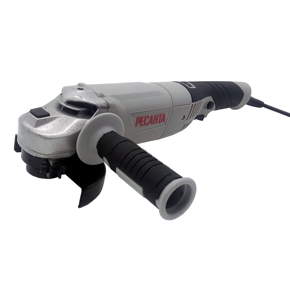 Углошлифовальная машина УШМ-125/1400Э Ресанта — инструмент, используемый для шлифования, зачистки поверхности или резки материала. Корпус редуктора выполнен из металла. Боковая рукоятка фиксируется в трех положениях для более удобной работы. Вытянутый корпус обеспечивает надежное удержание углошлифовальной машины во время работы. На корпусе инструмента предусмотрены вентиляционные отверстия, которые защищают рабочий механизм от перегрева. Пильный диск закрыт кожухом для защиты оператора от травм. Предусмотрена кнопка блокировки шпинделя для быстрой и безопасной замены оснастки.Болгарка на 125 мм — второй по размеру тип, и он является самым ходовым в народе. Болгарки на 125 мм маленькие, нетяжелые, удобные, имеют хорошие характеристики по мощности и, что немаловажно, недорогие. Такой болгаркой удобно и шлифовать, и резать. Правда, слишком толстые детали она не способна осилить, так как глубина проникновения полотна намного ниже радиуса. Но для дома такого выбора вполне хватит. И поэтому этот тип самый популярный для небольших домашних работ. В дополнение, в магазинах наибольший выбор кругов для резки и шлифовки идет именно на 125 мм.Преимущества болгарки (УШМ):