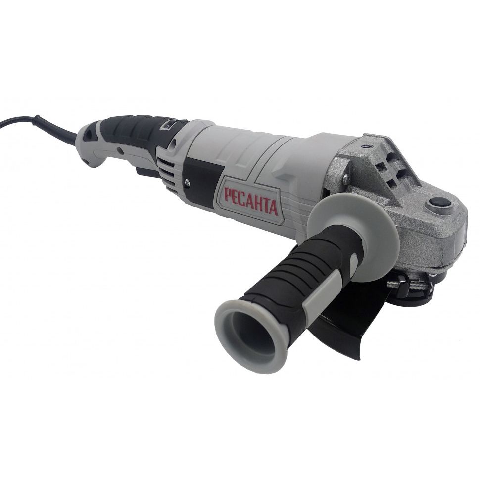 Углошлифовальная машина УШМ-150/1400Э Ресанта — инструмент, используемый для шлифования, зачистки поверхности или резки материала. Корпус редуктора выполнен из металла. Боковая рукоятка фиксируется в двух положениях для более удобной работы. Вытянутый корпус обеспечивает надежное удержание углошлифовальной машины во время работы. На корпусе инструмента предусмотрены вентиляционные отверстия, которые защищают рабочий механизм от перегрева. Пильный диск закрыт кожухом для защиты оператора от травм. Предусмотрена кнопка блокировки шпинделя для быстрой и безопасной замены оснастки.Болгарка на 150 мм является прекрасной альтернативой купить небольшую и немаленькую болгарку. Поэтому, кто не может решиться, что лучше – 125 или 180 мм, тот может выбрать размер 150. Такой болгаркой удобно и шлифовать, и резать. Отличается простотой в эксплуатации и прочным корпусом.Преимущества болгарки: