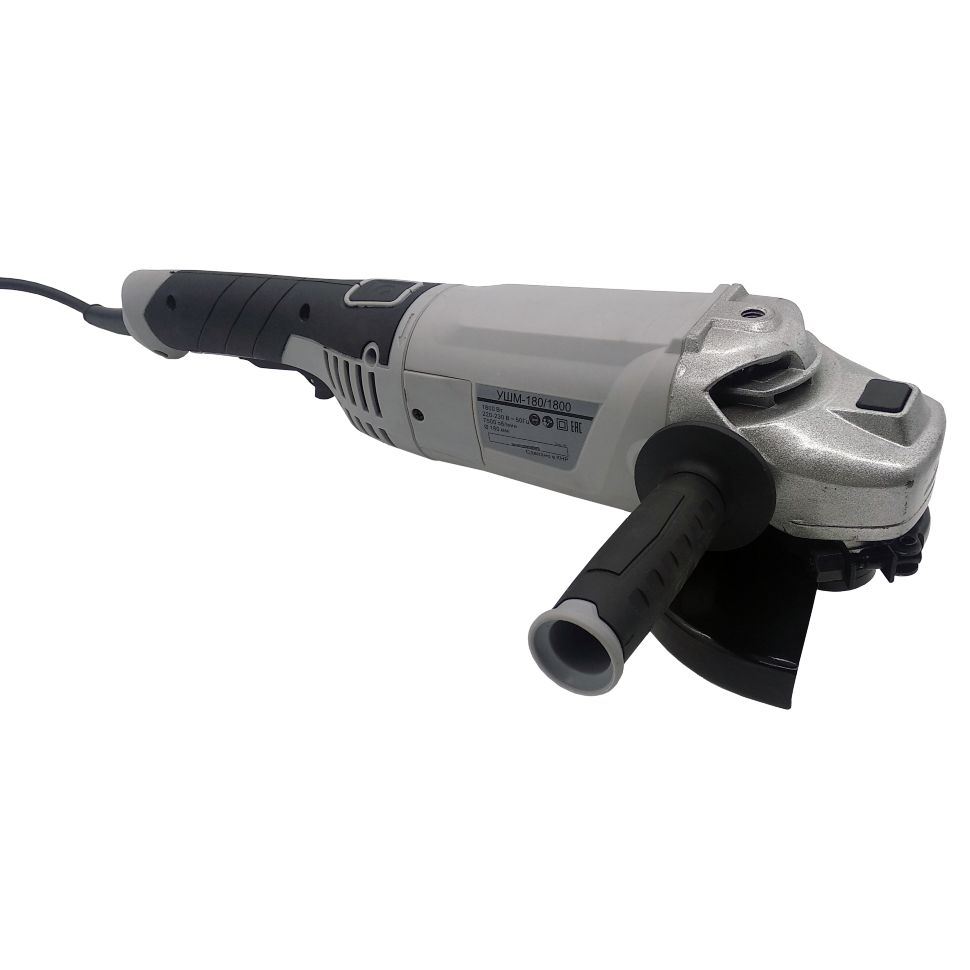 Углошлифовальная машина (болгарка) УШМ-180/1800 оснащена двигателем мощностью 1800 Вт и диском диаметром 180 мм. Смена угольных щеток происходит быстро и легко за счет наружного расположения технического узла. Вентиляционные отверстия обеспечивают оптимальное охлаждения рабочих элементов для надежной работы инструмента. Для удобства работы рукоятка может быть установлена в трех различных положениях с шагом 90°.Болгарка на 180 мм хороша для резки, и такие болгарки перспективны для строительства. Таким размером уже можно разрезать и трубу толстую и кирпич осилить, хотя в случае последнего, все равно придется подрезать с двух сторон. Но для мелких работ такой инструмент будет неудобным, здесь лучше купить болгарку с меньшим диаметром круга.Преимущества болгарки (УШМ):