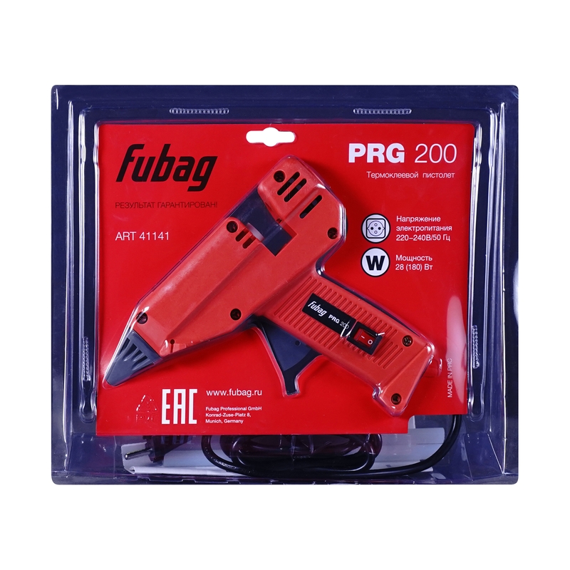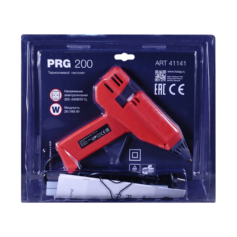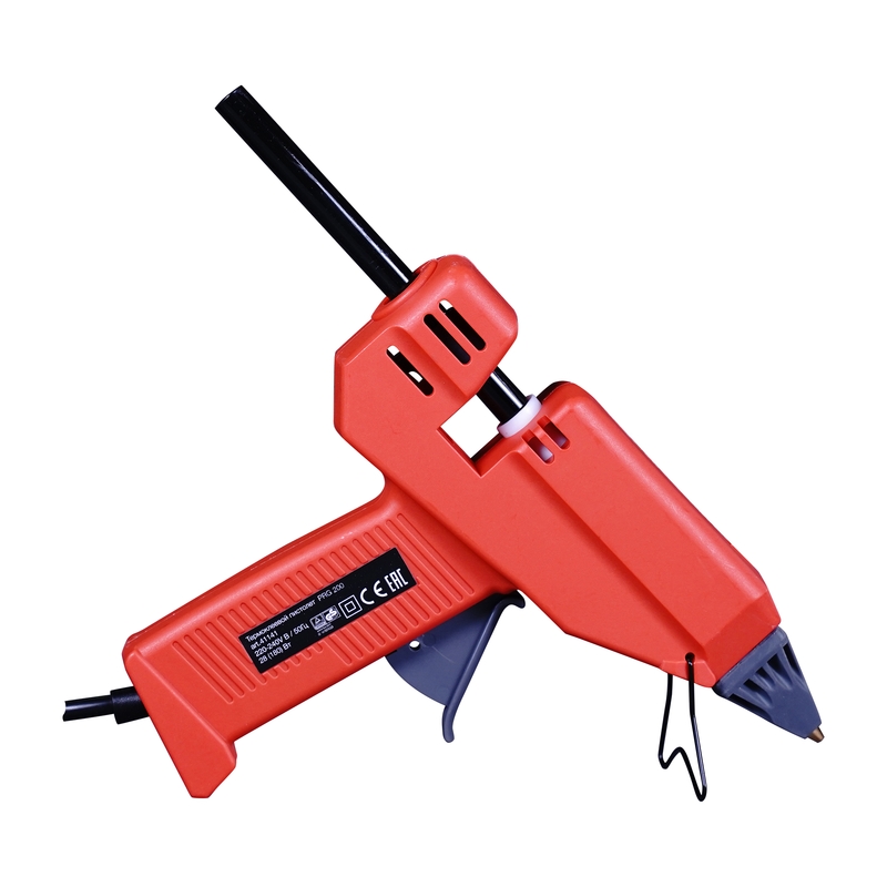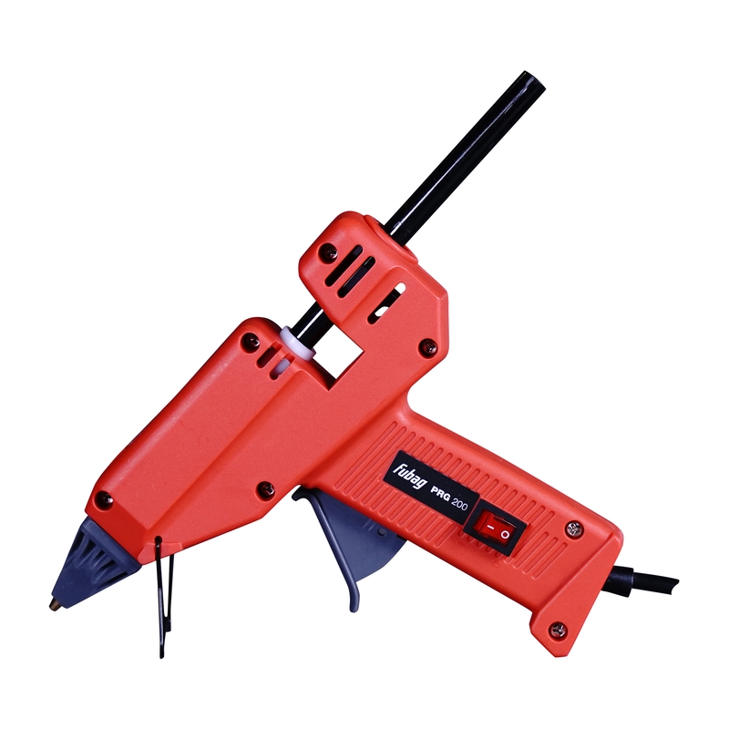 Термоклеевой пистолет PRG 200 предназначен для быстрого склеивания поверхностей из дерева, стеклокерамики, кожи, картона, текстиля, ДСП, линолеума, пластика и прочих материалов горячим клеем. Работает с клеевыми стержнями диаметром 11 мм. Оснащен металлической скобой для удобного хранения.
