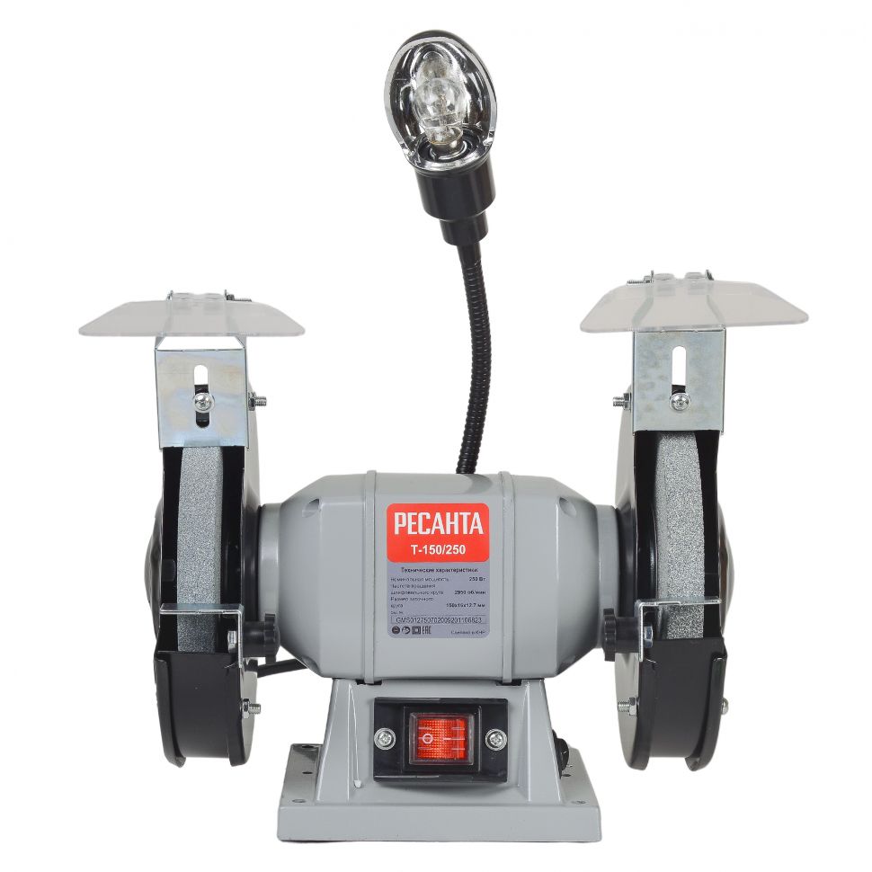 Точильный станок РЕСАНТА Т-150/250 — золотая середина точильных станков этого бренда. Вес и габариты также остаются приемлемыми для небольшого рабочего стола, а мощность и размер круга чуть подросли, что позволяет быстрее справиться с теми же задачами. Оснащается регулируемой подсветкой.