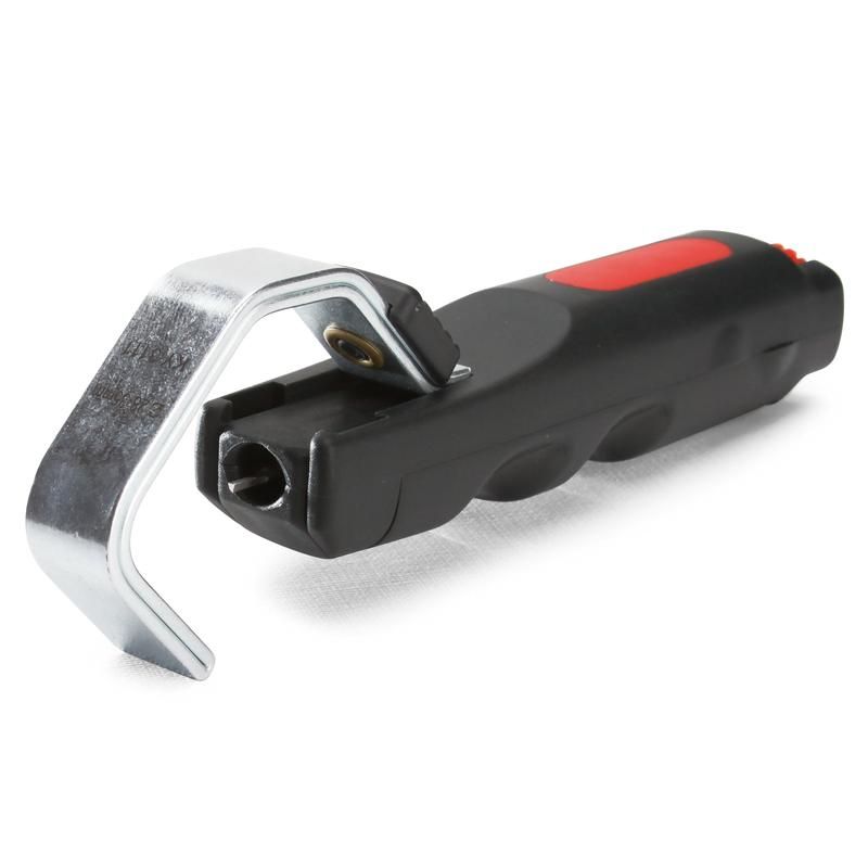 Металлическая подпружиненная скоба для фиксации инструмента на кабеле