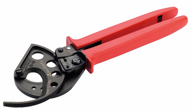 Кабелерез трещоточного типа для резки медного и алюминиевого одножильного и многожильного кабеля диаметром до 54мм.