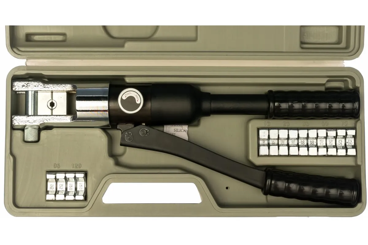 Пресс гидравлический серии ПГРс-120 используется для быстрой и качественной опрессовки трубчатых наконечников из меди и алюминия.